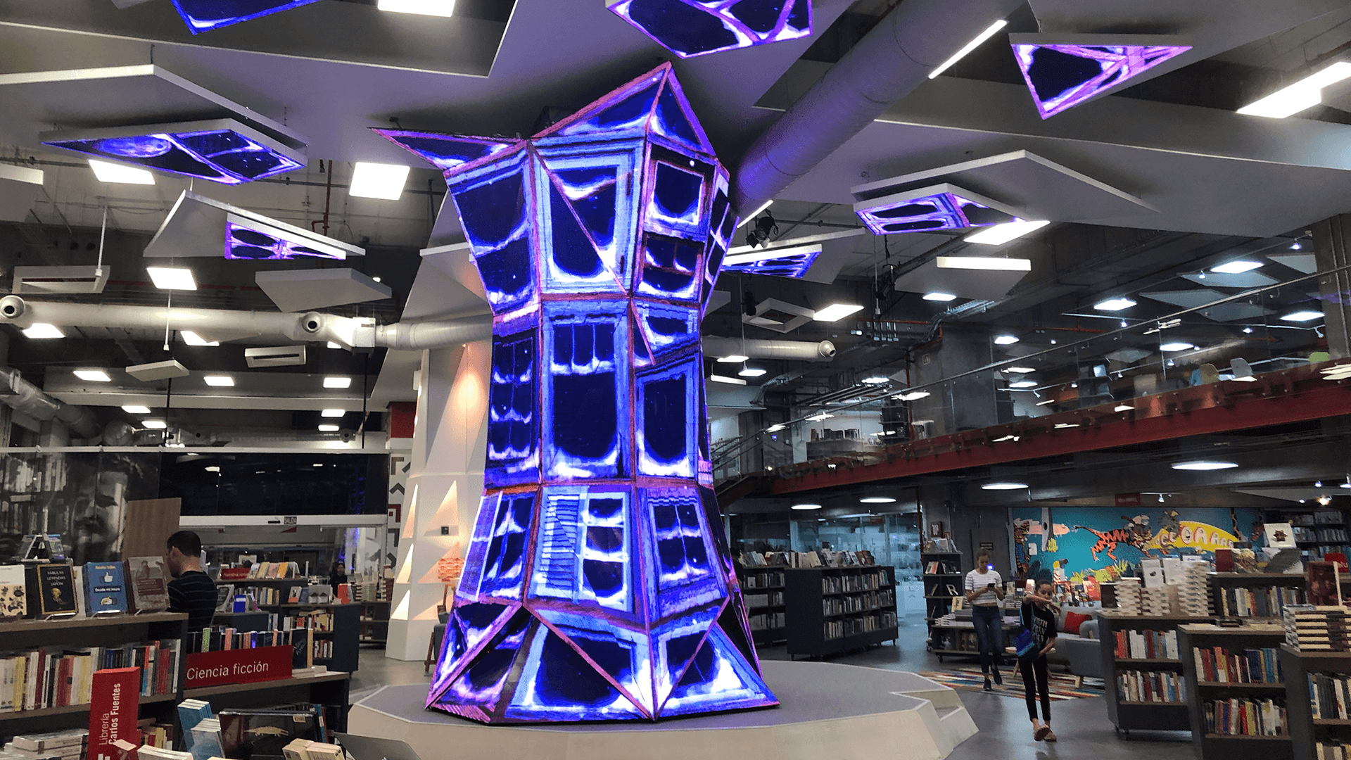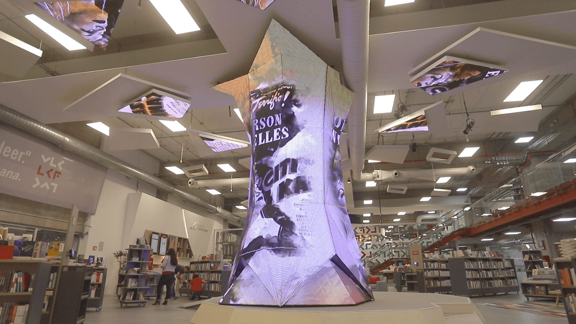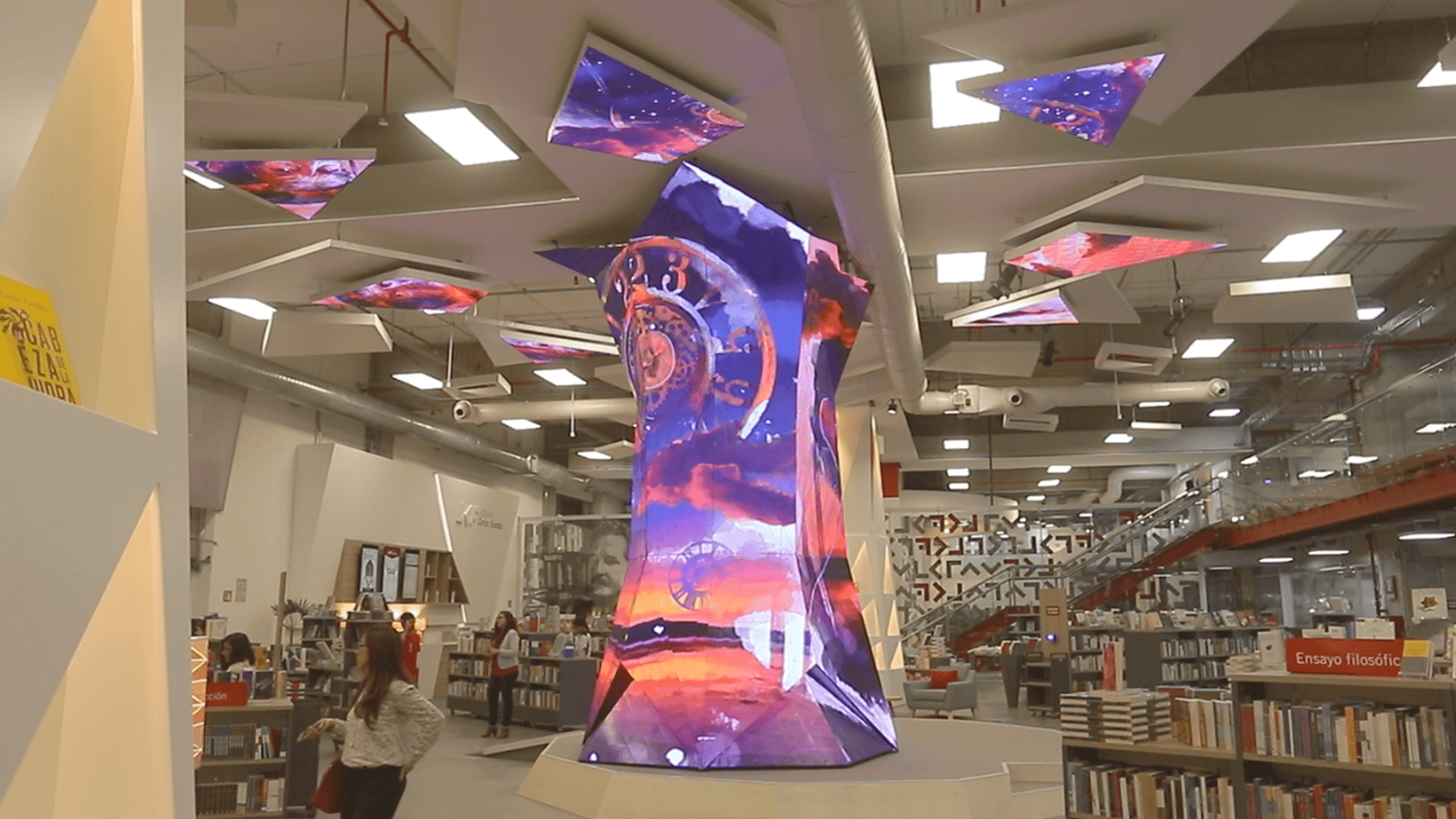 First permanent sculpture of irregular LED screens in Latin America. 5.5 meters high, 3 tons of structure, 2,500 triangular LED modules and 55m2 LED displays and 7,562,500 LED's. Assembled manually piece by piece. Artistic 3D automated content.