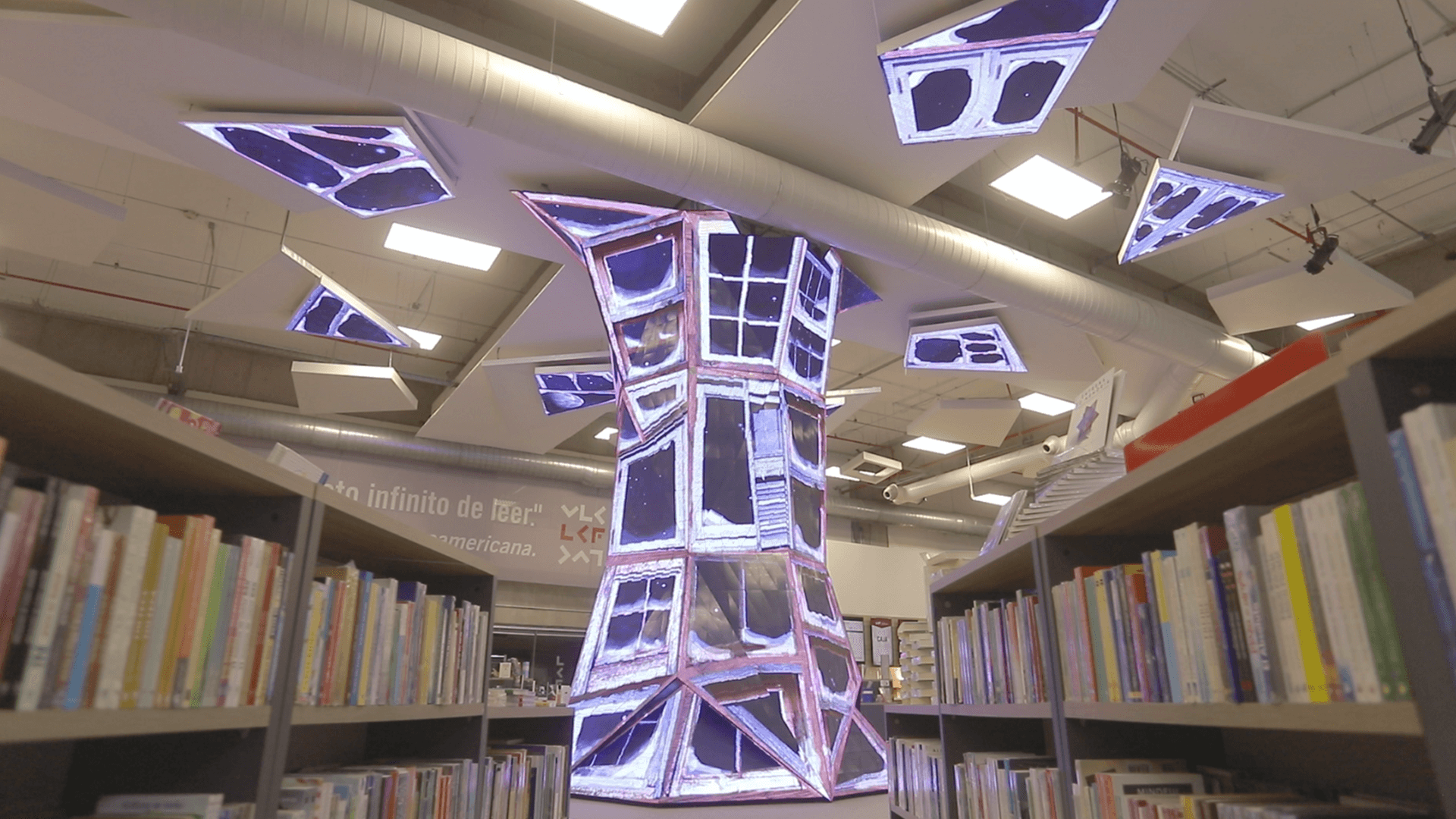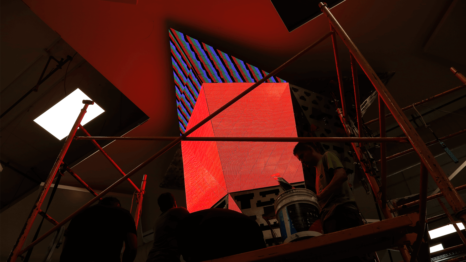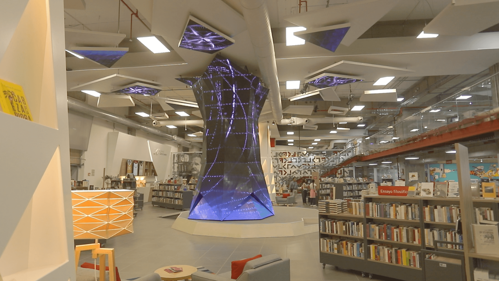 First permanent sculpture of irregular LED screens in Latin America. 5.5 meters high, 3 tons of structure, 2,500 triangular LED modules and 55m2 LED displays and 7,562,500 LED's. Assembled manually piece by piece. Artistic 3D automated content.