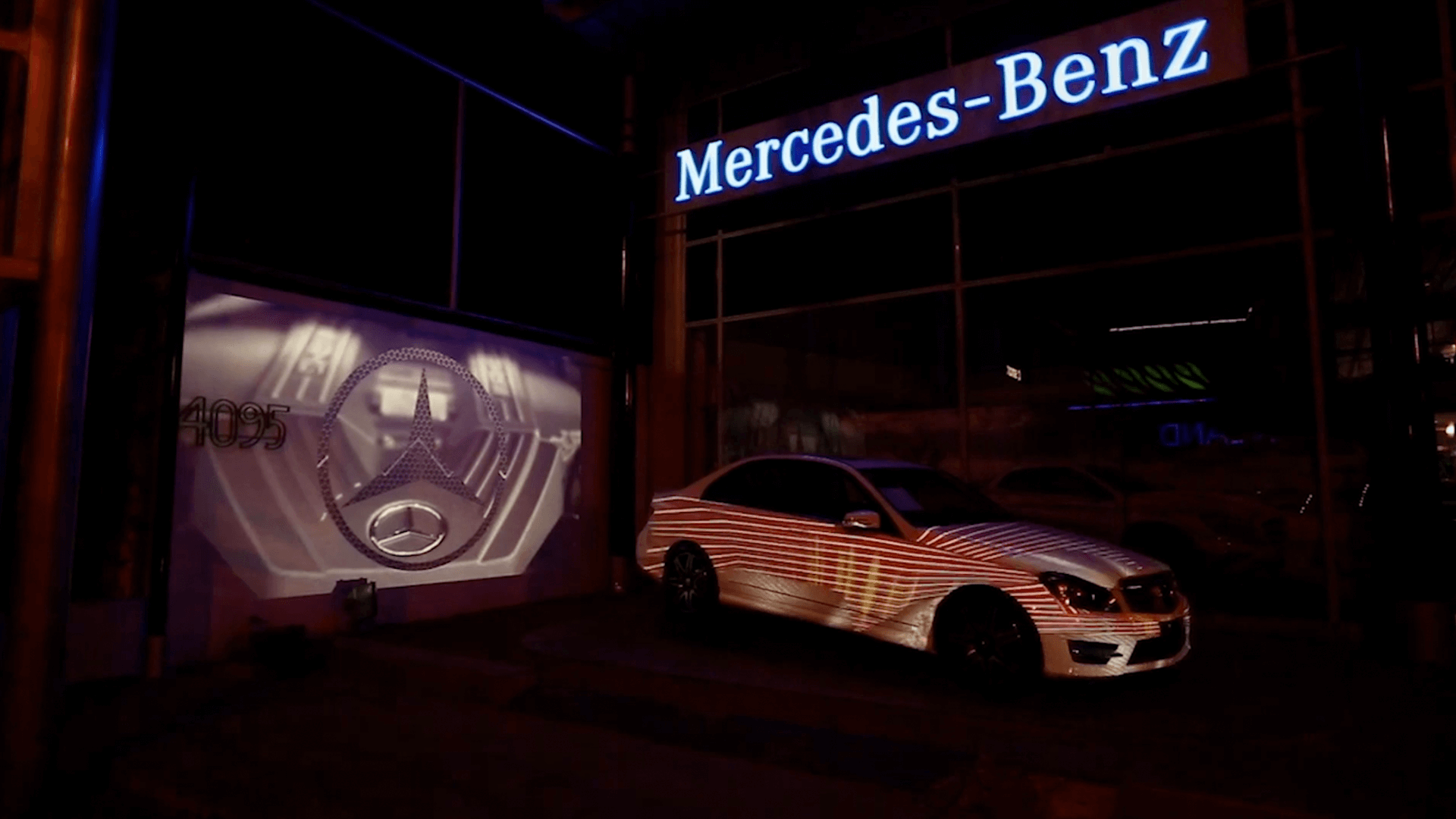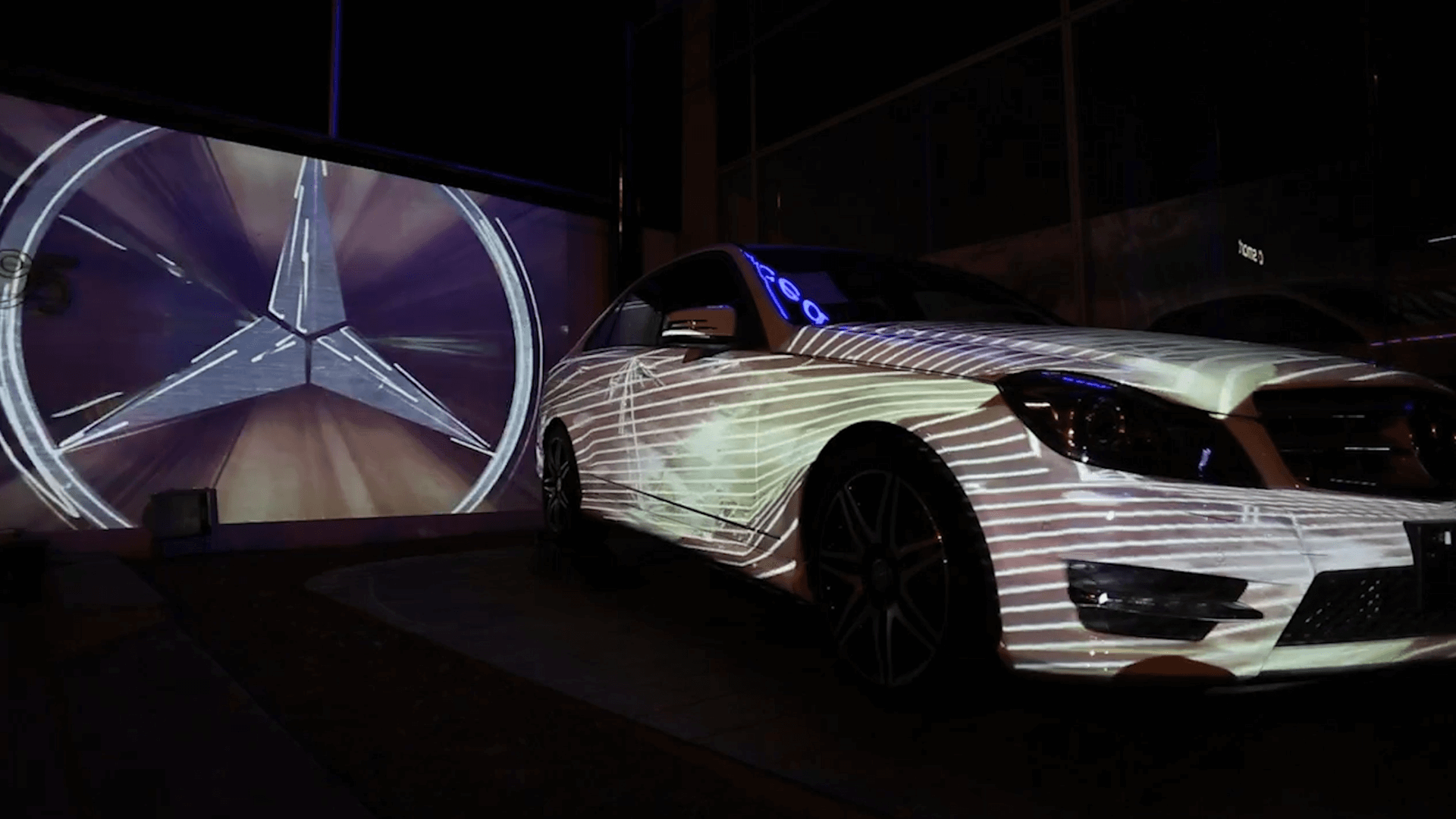 We did an abstract video mapping projection over a Mercedes automobile in a corporate event for the company.