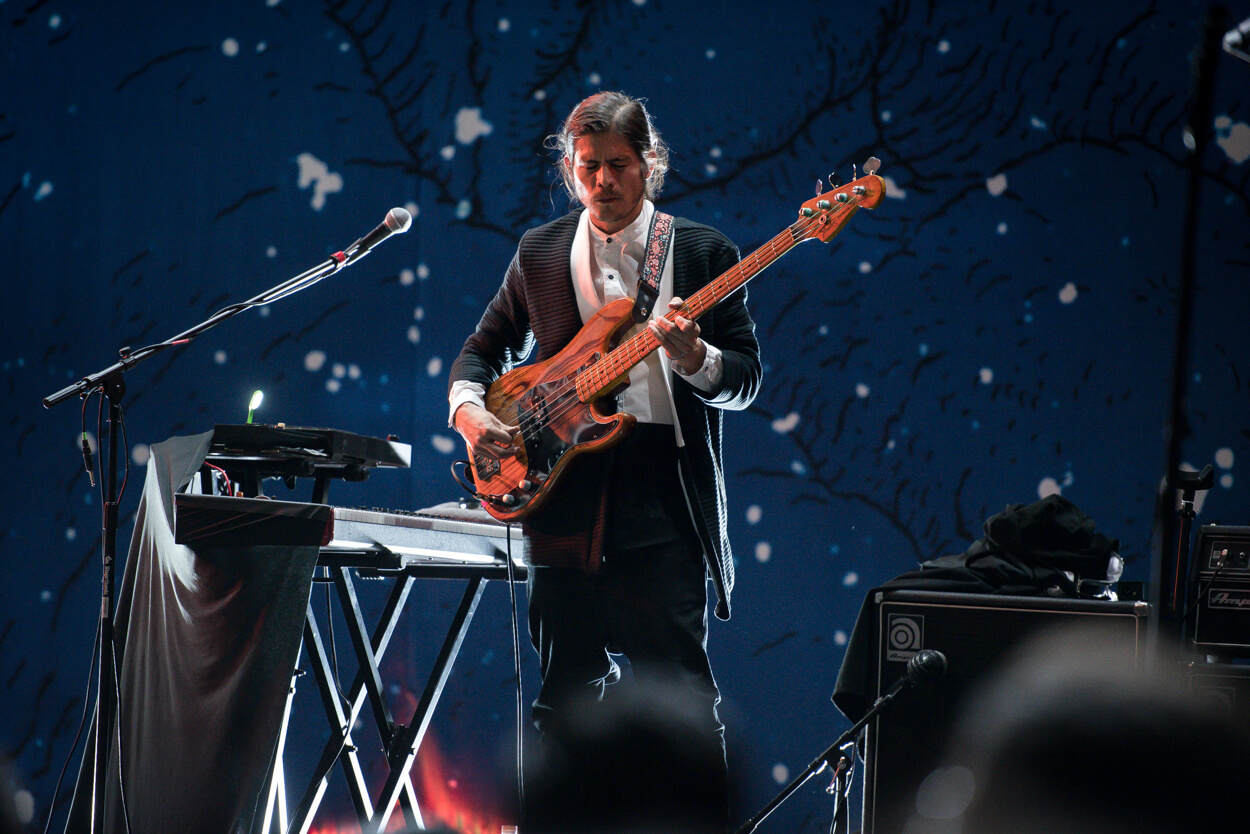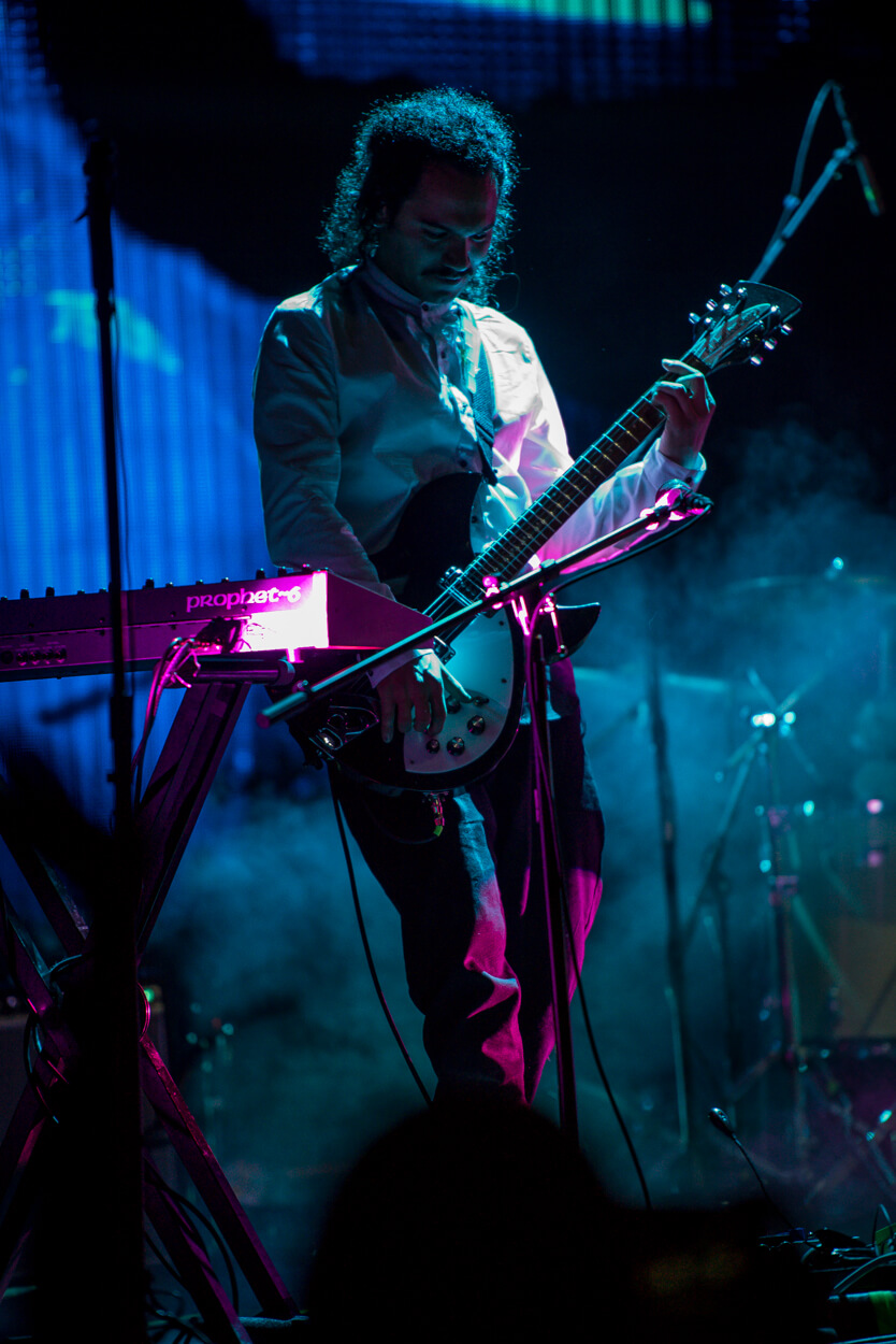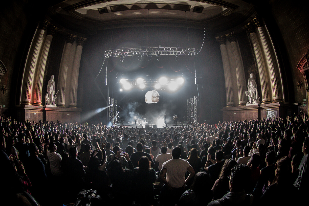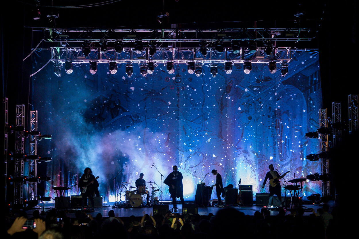 We designed a new concept for Porter to use in their concerts. A giant prop in shape of an abstract head that lights up in different colors as it hangs on top of the band. A backdrop stage & a big abstract illustration that projects light through perforations; all active with a synchronized light show that develops throughout the concert in different ways.